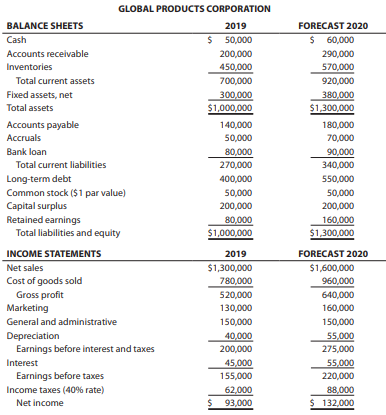 Following are financial statements (historical and forecasted) for the Global Products Corporation.