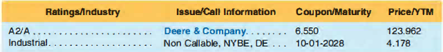 This quote indicates that, on this day, Deere's bonds have a market price of 123.962 ( 123.962% of face value) resulting in a yield of 4.178%.