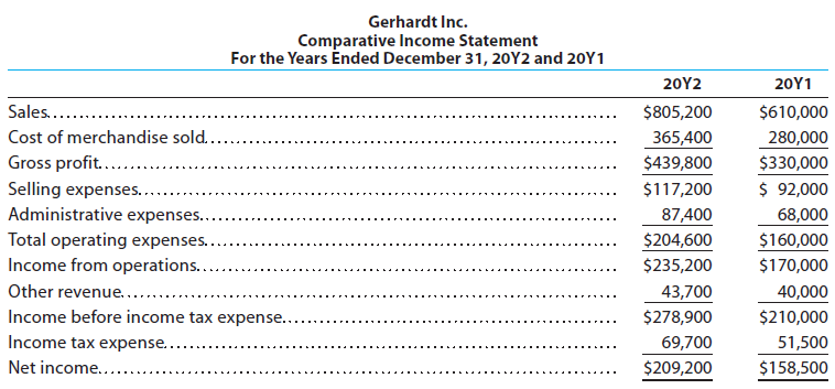 For 20Y2, Gerhardt Inc. reported a significant increase in net income. At the end of the year, John Mayer, the president, is presented with the following condensed comparative income statement: