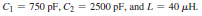 > Calculate the oscillator frequency for an FET Hartley oscillator as in Fig. 14.29 for the following circuit values: