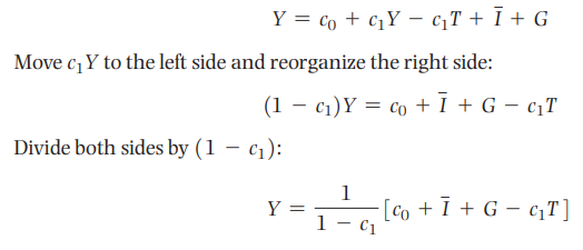 > Consider first the goods market model with constant investment that we saw in Chapter 3. Consumption is given by C= C0 + C1(Y - T) and I, G, and T are given. a. Solve for equilibrium output. What is the value of the multiplier for a change in autonomous