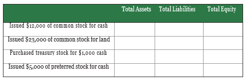 For each transaction, determine the impactâincrease, decrease, or no effectâon total assets, total liabilities, and total equity.