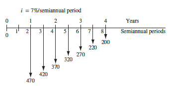> Metalfab Pump and Filter, Inc. estimates that the cost of steel bodies for pressure valves will increase by $2 every 3 months. If the cost for the first quarter is expected to be $80, what is the present worth of the costs for a 3-year time period at an