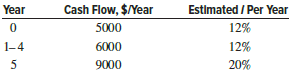 > Two mutually exclusive alternatives have the estimates shown below. Use annual worth analysis to determine which should be selected at an interest rate of 10% per year.
