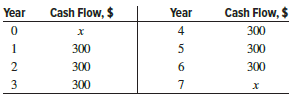 Year Cash Flow, $ x 300 300 300 0123 Year 4567 Cash Flow, $ 300 300 300 X