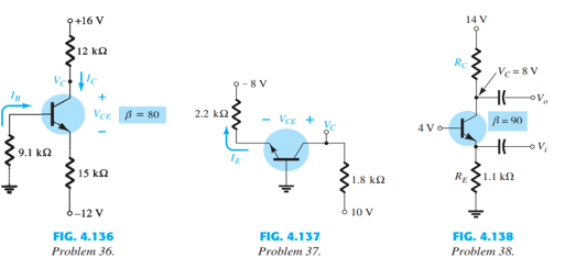 > For the network of Fig. 4.137, determine: a. IE. b. VC. c. VCE.