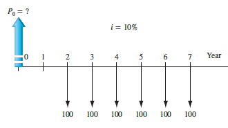 P₁ = ? 0 1 2 100 3 i = 10% 4 5 6 7 100 100 100 100 100 Year