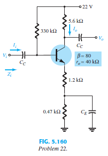 > For the network of Fig. 5.161: a. Determine re. b. Calculate VB, VCE, and VCB. c. Determine Zi and Zo. d. Calculate Av = VO>VI. e. Determine Ai = Io>Ii.