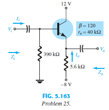> For the network of Fig. 5.186: a. Determine Zi and Zo. b. Calculate Av and Ai. c. Determine re and compare bre to hie.