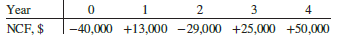 > Use factors and a spreadsheet to determine the interest rate per period from the following equation: 0 = −40,000 + 8000(P∕A,i*,5) + 8000(P∕F,i*,8)