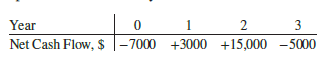 For the nonconventional net cash flow shown, determine the external rate of return using the MIRR method at a borrowing rate of 10% per year and an investment rate of