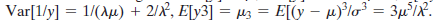 [For the third variable, I used the known (to me) true values of the parameters.] Using the sample data, compute the maximum likelihood estimators of m and l and the estimates of the asymptotic standard errors. Compute the method of moments estimators using the means of 1/y and y3.