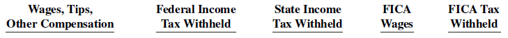 c. The W-2 Wage and Tax Statement requires the following dollar data.