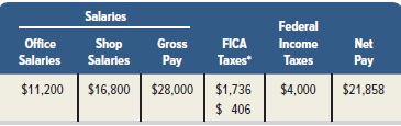 > At the end of the first pay period of the year, Sofia earned $4,000 of salary. Withholdings from Sofia’s salary include FICA Social Security taxes at the rate of 6.2%, FICA Medicare taxes at the rate of 1.45%, $500 of federal income taxes, $160 of medica