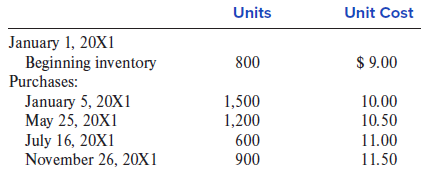 Prepare schedules to compute the ending inventory at December 31, 20X1, and cost of goods sold for the year ended December 31, 20X1, under each of the following inventory methods: