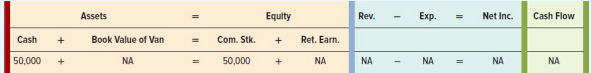 b. Assume that Friendly earns $26,000 of cash revenue during Year 1. Record the purchase of the van and the recognition of the revenue and the depreciation expense for the first year in a financial statements model like the one shown earlier.