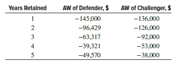 > An engineer with Calahan Technologies calculated the AW of cost values shown for a presently owned machine, using estimates she obtained from the vendor and company records. Retention Period, Years……………… AW of Costs, $ per Year 1…………………………………. −92,000 2