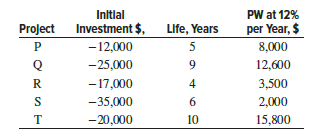 > The independent projects shown below are under consideration for possible implementation by Renishaw, Inc. If the company’s MARR is 14% per year and it uses the IROR method of capital budgeting, the projects it should select under a bud