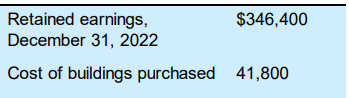 > From the following data, calculate the retained earnings balance as of December 31, 2022: