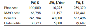 From the PW, AW, and FW values shown, the conventional B/C ratio is closest to: