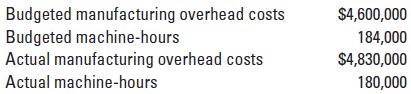 Gammaro Manufacturer uses normal costing. It allocates manufacturing overhead costs using a budgeted rate per machine-hour. The following data are available for 2020: