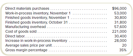 Gates Manufacturing reports based on an October 31 fiscal year. As a part of your interview for a cost analyst position, the interviewer provides you with the information on the following page.