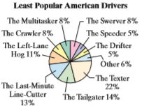 Least Popular American Drivers The Multitasker 8% - The Swerver 8% The Crawler 8% The Speeder 5% The Left-Lane Hog 11% - The Drifter 5% Other 6% -The Texter The Last-Minute Line-Cutter 13% 22% The Tailgater 14%