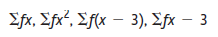 Efx, Efx², £f(x – 3), Efx – 3 4 Ex; Ex}, ( Ex;)², > (x; – 3), Ex; – 3. Ex; Xi