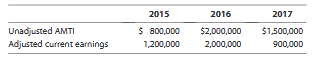 2015 2016 2017 $ 800,000 Unadjusted AMTI Adjusted current earnings $2,000,000 $1.500,000 1,200,000 2,000,000 000'006