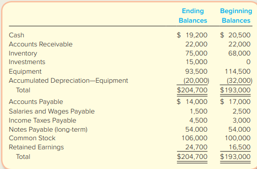 ⢠Depreciation expense was $3,000. Its comparative balance sheet is presented below.