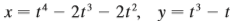 > Graph the curve in a viewing rectangle that displays all the important aspects of the curve. x= 14 + 41° – 81², y=21² – t
