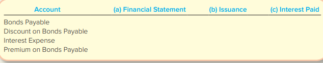 Complete the following table for each account by indicating (a) whether it is reported on the Balance Sheet (B/S) or Income Statement (I/S); (b) the dollar amount by which the account increases (+), decreases (−), or does not change (0) when Grocery Corporation issues the bonds; and (c) the direction of change in the account [increase (+), decrease (−), or no change (NC)] when Grocery Corporation records the interest payment on December 31.](../images/grocery-corporation-received-300328-for-11-percent-bonds-issued-240420-1.jpg)
