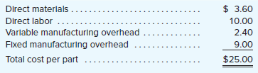 Han Products manufactures 30,000 units of part S-6 each year for use on its production line. At this level of activity, the cost per unit for part S-6 is: