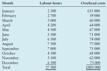 > Pierre Corneille, managing director of Marre-Quise Consultants SA, is examining how overhead costs behave with variations in monthly professional labour-hours billed to clients. Assume the following historical data: Required 1. Calculate the linear cost