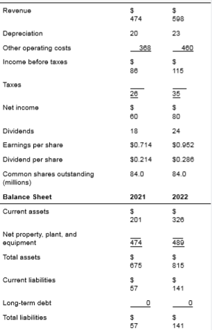 > Use the financial statements for Chicago Refrigerator Inc. (see Tables 14.15 and 14.16) to compute ratios a through h for 2022.) a. Quick ratio. b. Return on assets. c. Return on common shareholders’ equity. d. Earnings per share of