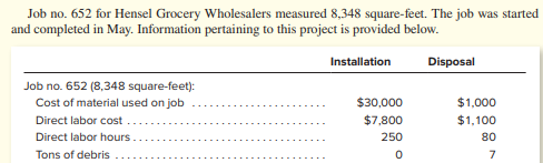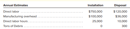 Hendersonville Roofing uses job order costing and applies manufacturing overhead to individual projects using predetermined overhead rates. In the Installation Division, overhead is applied on the basis of direct labor hours, and in the Disposal Division, overhead is applied on the basis of debris tonnage hauled to the landfill. At the beginning of the current year, management made the following budget estimates to determine overhead application rates.