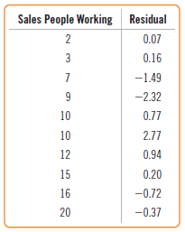 Here are the residuals for a regression of Sales on Number of Sales People Working for the bookstore of Exercise 1: