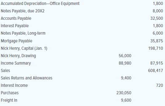 > Whatnots is a retail seller of cards, novelty items, and business products. On December 31, 20X1, the firm’s general ledger contained the following accounts and balances. INSTRUCTIONS 1. Prepare the Trial Balance section of a 10-column