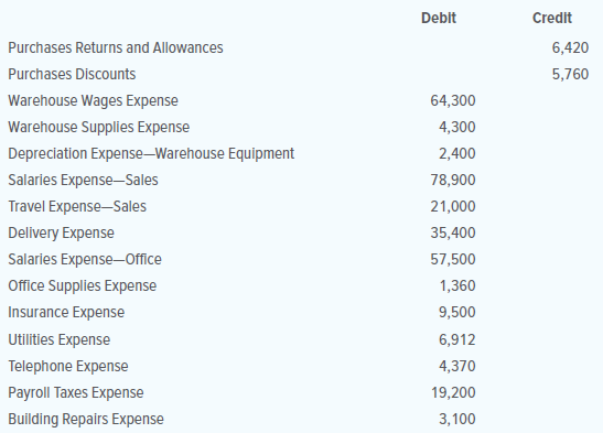 1. Prepare a classified income statement for the year ended December 31, 20X1. The expense accounts represent warehouse expenses, selling expenses, and general and administrative expenses.