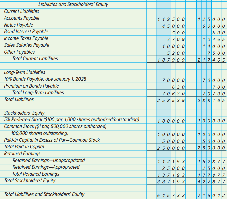 b. The rate of return on common stockholdersâ equity. Preferred dividends are $5,000 for both years. (Remember that dividend requirements on preferred stock must be deducted from net income after taxes to obtain income available to common stockholders.)