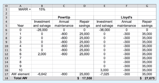 > With these new estimates, what is the recalculated AW for the Lloyd’s protectors? Use the old first cost and maintenance cost estimates for the first 3 years. If these estimates had been made 3 years ago, would Lloyd’s