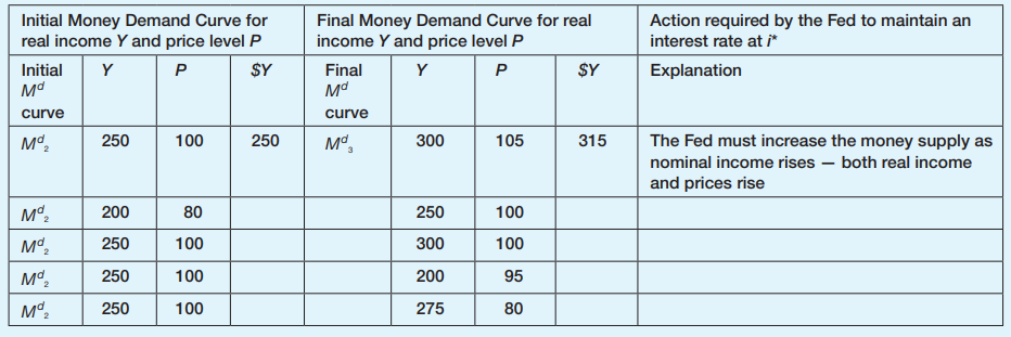 > Suppose the money demand is given by Md= €Y (0.08 - 0.4i) where €Y is €5,000 billion. a. If the money demand is €100 billion, what is the interest rate? b. If a central bank wants to increase money supply to €300 billion, what is the interest rate it sh