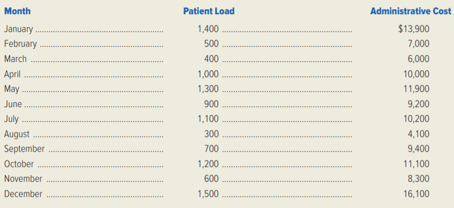 > Refer to the data and accompanying information in the Case 6-51. Required: 1. Use the high-low method to estimate the cost behaviour for the clinic’s administrative costs. Express the cost behaviour in formula form (Y = a + bX). What i
