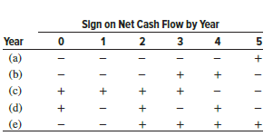 > According to Descartes’ rule of signs, determine the possible number of i* values for the net cash flow series with the following signs: (a) −−−+++−+− (b) −−−−−−+++++ (c) ++++−−−−−−+−+−−− (d) −−++++−