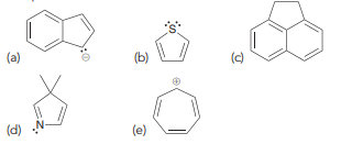 > Identify which of the following are aromatic: (a) (b) (c) (d) (e)