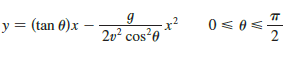 If a projectile is fired with an initial velocity v at an angle of inclination θ from the horizontal, then its trajectory, neglecting air resistance, is the parabola