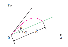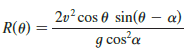 (a). Suppose the projectile is fired from the base of a plane that is inclined at an angle α, α > 0, from the horizontal, as shown in the figure. Show that the range of the projectile, measured up the slope, is given by