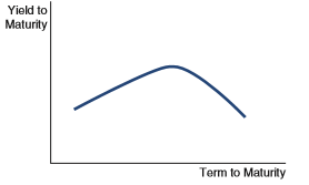 > If a yield curve looks like the one shown here, what is the market predicting about the movement of future short-term interest rates? What might the yield curve indicate about the market’s predictions about the inflation rate in the fut