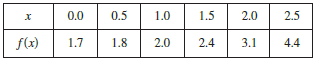 0.0 0.5 1.0 1.5 2.0 2.5 f(x) 1.7 1.8 2.0 2.4 3.1 4.4