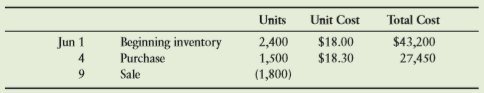 > If Leading Edge Frame Shop uses the LIFO method, cost of goods sold will be a. $27,450. b. $32,850. c. $32,700. d. $32,400. Units Unit Cost Total Cost $18.00 Jun 1 4 Beginning inventory Purchase 2,400 1,500 $43,200 27,450 $18.30 9. Sale (1,800)